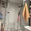 В изготовлении кабин используем закаленное стекло толщиной 4 мм. С целью достижения увеличенной жесткости конструкции горизонтальный профиль ложится на бортик (а не рядом с бортиком) и не имеет движения по поддону, а отсутствие зазора между профилем и бортиком поддона препятствует скоплению грязи.