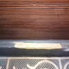 После первых заморозков было замечено,что дверь плохо держит тепло.Уплотнители сквозят,в замочную скважину дует(пришлось заткнуть),краска отваливается от порога,но,это только начало.Уже дальше пошло.