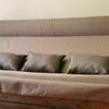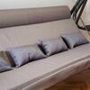 Мягкий диван изготовлен в виде цельных сиденья, спинки и подголовника. Подголовник, передняя сторона спинки и сидения дивана сшиты из ткани типа "рогожка", состав - полиэфир 100%, плотностью 340г/м. Задняя сторона сшита из спанбонда. Ткань с водоотталкивающей пропиткой. Наполнитель - холкон, плотностью 1200.