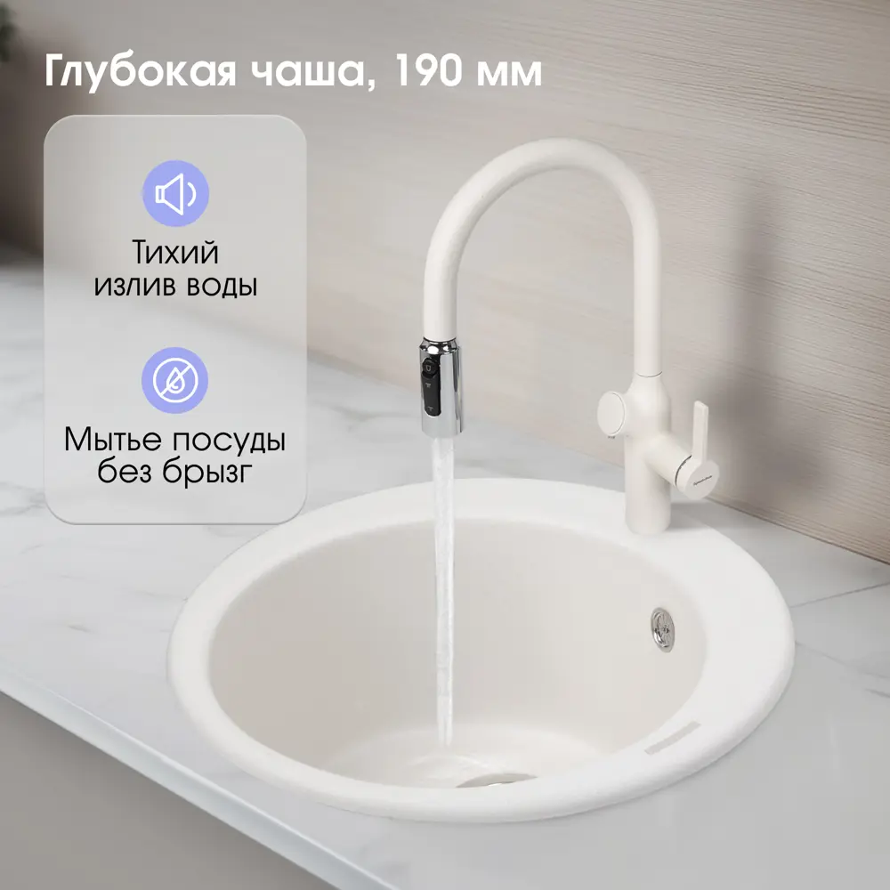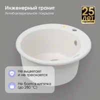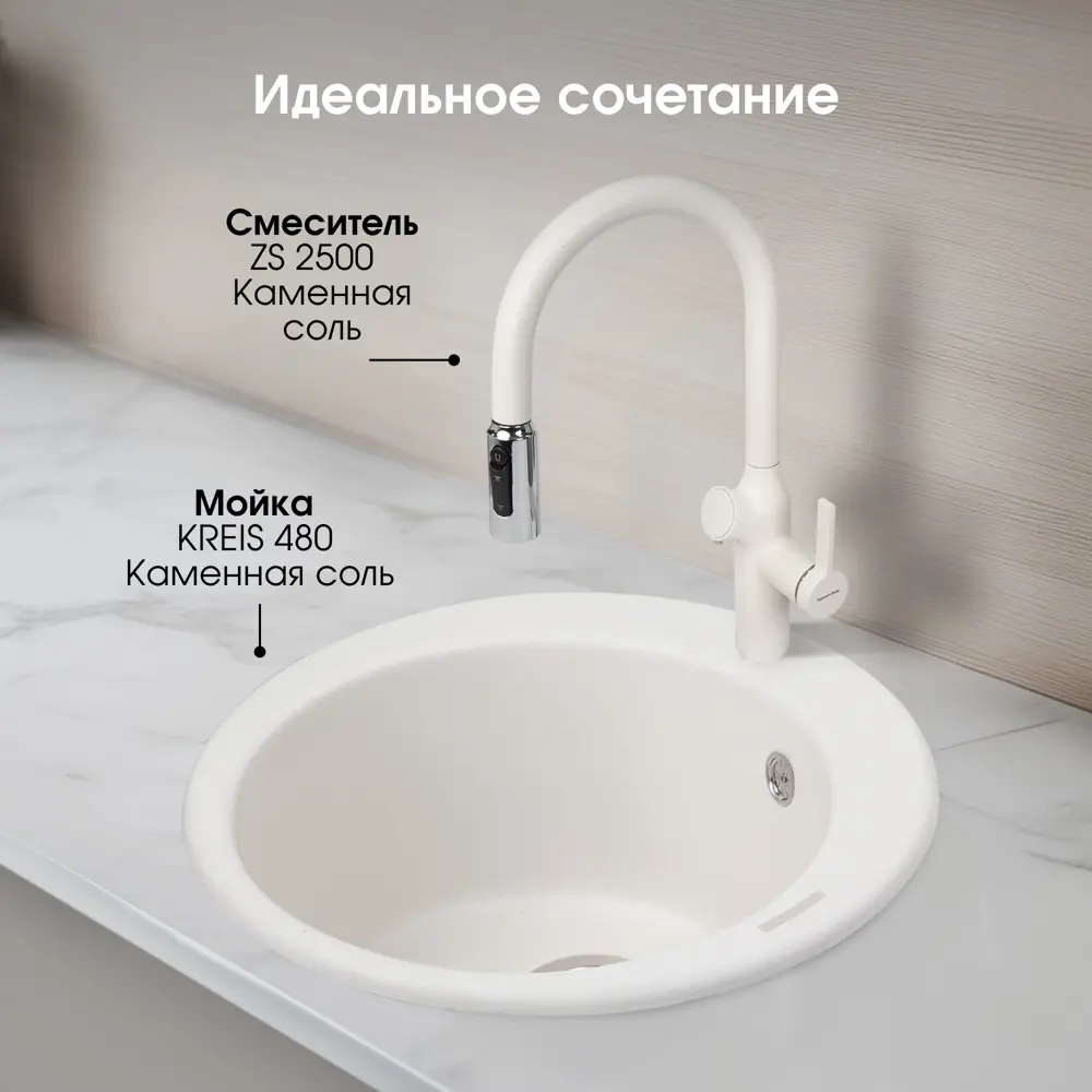 Мойка для кухни Zigmund & shtain KREIS 480 Каменная соль 48x48 см глубина чаши 21 см гранит цвет слоновая кость в Воронеже