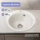 Модель KREIS 480 - отличное решение для небольших кухонь. Круглая форма прекрасно впишется в любой интерьер. При небольших внешних габаритах, мойка обладает глубокой чашей в 19 см, которая позволяет вымыть большую кастрюлю, или пару сковородок разом. Можно не волноваться за плотность прилегания мойки к столешнице, входящая в комплект крепежная арматура Hettich обеспечит надёжное крепление к поверхности, на протяжении всего срока службы. Мойка выполнена из натурального материала, и является полностью безвредной для здоровья.