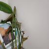 Пересаживать стала спустя 2 недели. Листья начали сохнуть(Последнее фото). При пересадке не смогла до конца убрать глиняный ком с опилками. Не помогло размачивание, ковыряла палочкой деревянной несколько часов. В итоге решила сажать с остатками кома, боялась повредить корни.